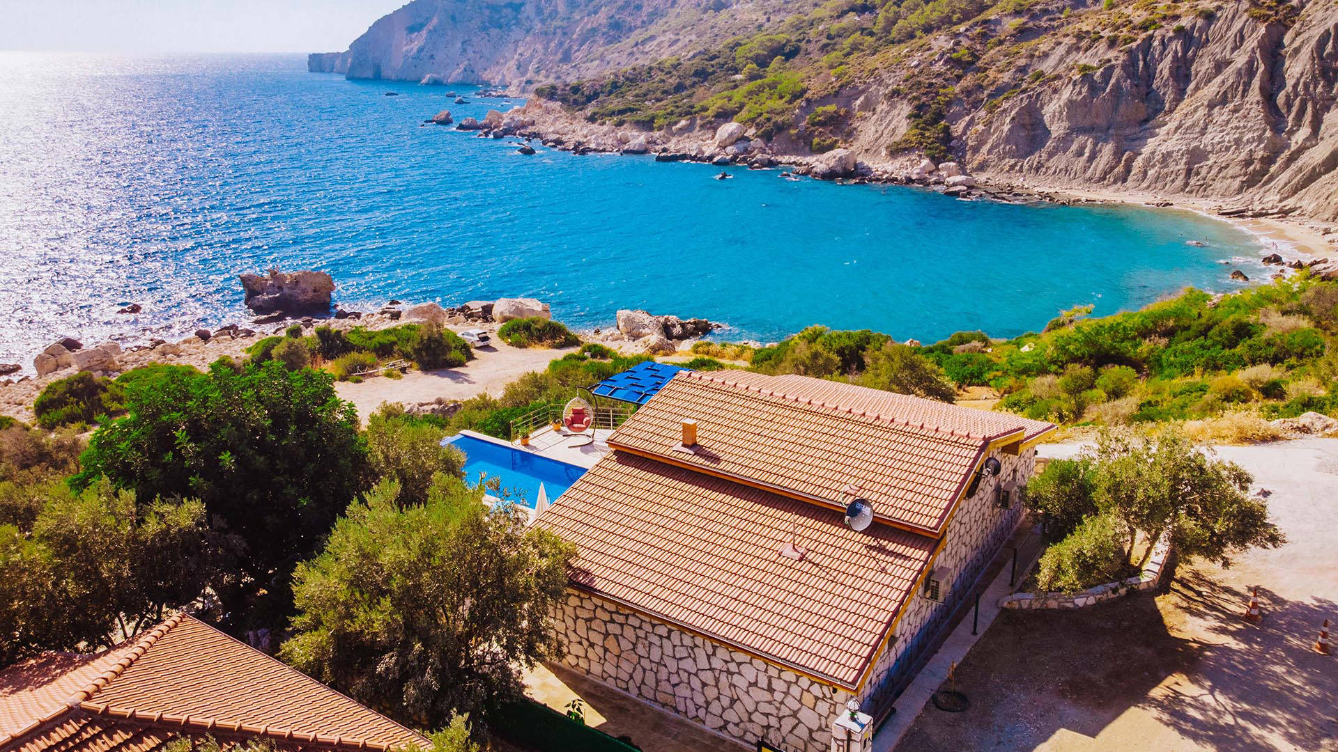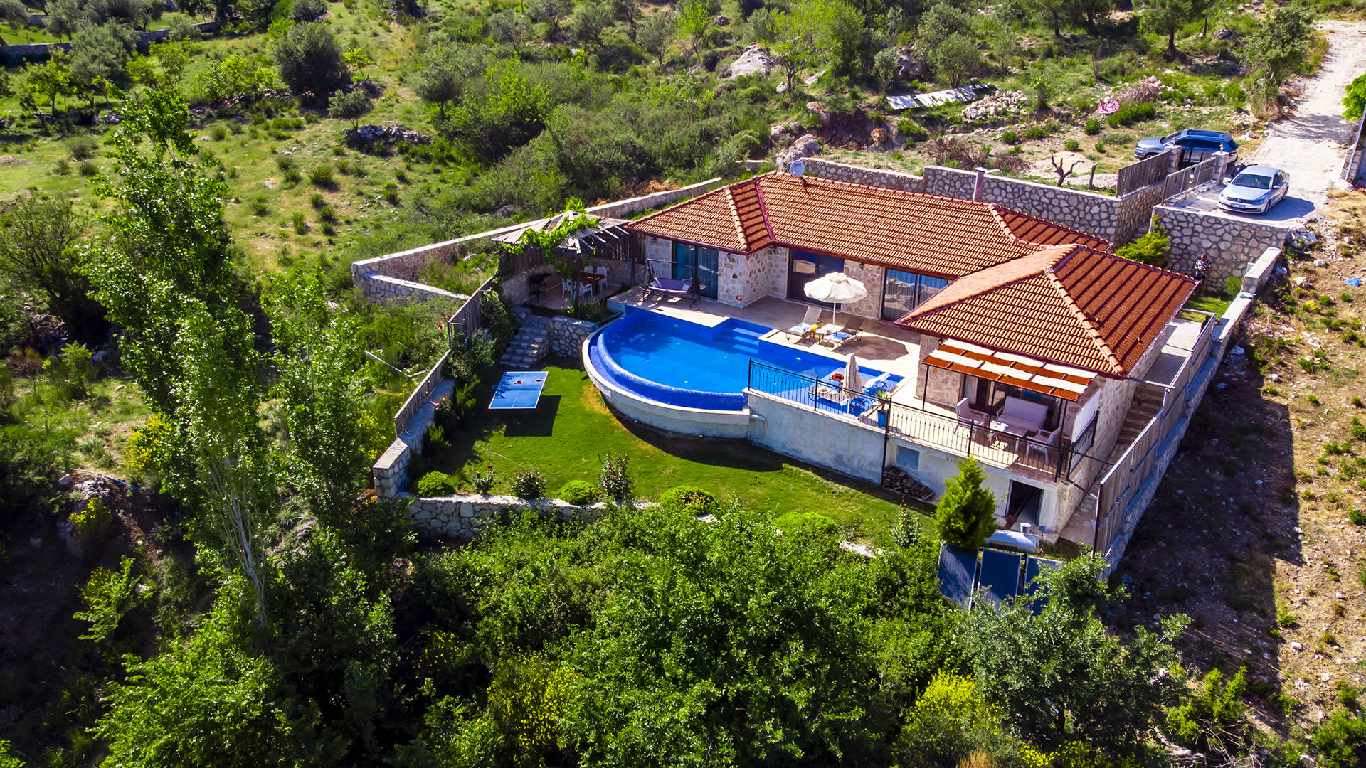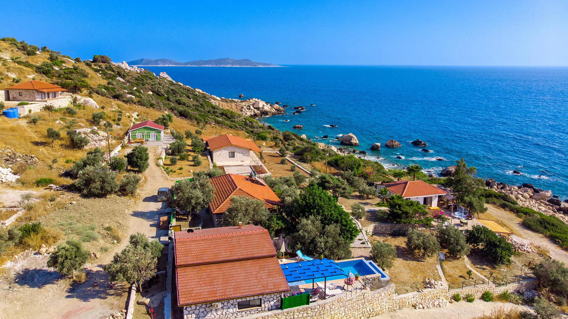 Drone ile yapılan dış mekan fotoğraf ve video çekimlerinde, villanın genel görüntüsünü ve konumunu anlamnıza yardımcı olur,